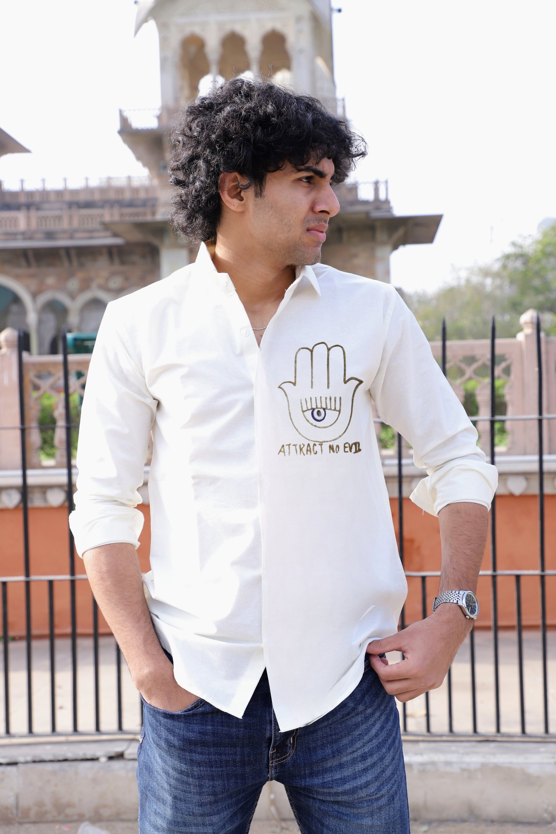 Attract No Evil Hand Painted White Shirt